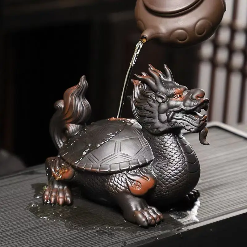 3. Placing this dragon turtle tea pet ornament at home not only brings beauty and fun to the tea set, but also makes the tea tasting process more interesting and ceremonial.